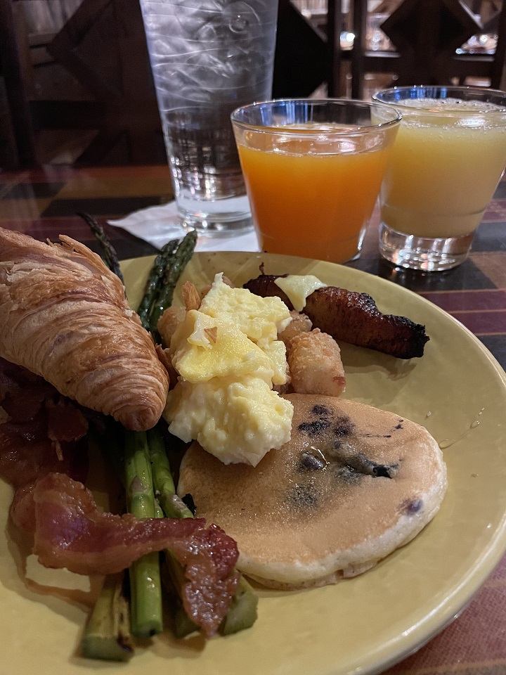 On this trip, I didn’t have time to enjoy all the food offerings at Animal Kingdom Lodge as I was on a mission to visit all the parks over the weekend. I’ve dined at Jiko, the Dining Place, in the past and found it to be a lovely dining experience (highly suggest a glass of African Pinotage and the Filet Mignon entrée). I was able to visit the quick service option, The Mara, and also Boma, for the breakfast buffet. I’d return to The Mara but don’t recommend Boma based on my experience below.