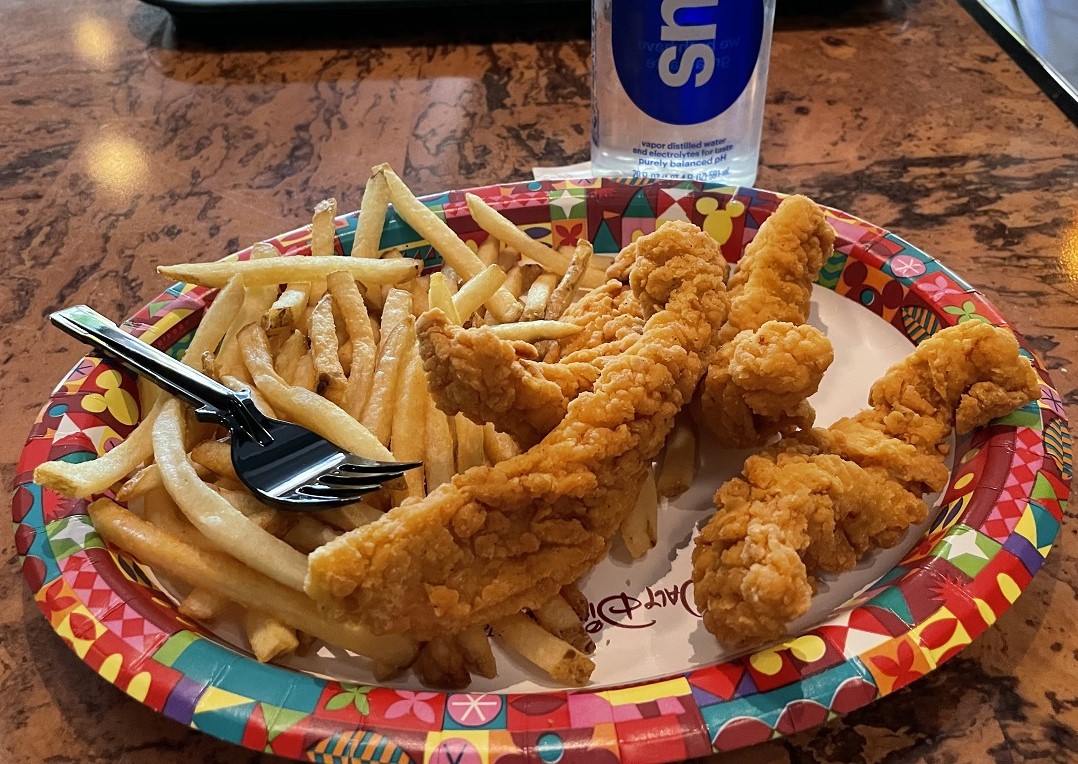 Upon arrival to the hotel, I stopped at The Mara quick service and ordered chicken fingers which seemed my safe but not healthy option (seriously Disney would it kill you to sell plain grilled chicken?) I bought a bottle of water for $6 as I entered the zone my sister called “it’s Disney money don’t think too long on it” as I tapped my Magic Band and entered my PIN to pay for food. When I returned from Epcot late night, I went back here and waited for the flat bread pizza that I took back to my room. I added a PB&J snackable to bring to Hollywood Studios in the morning as my breakfast option. Again, it wasn’t a healthy day of eating. The Mara is where you go for salads, sandwiches, fries and pizza along with ice cream and a myriad of bottled drink choices. The Mara is a short walk out of the main building passing the pool area.
