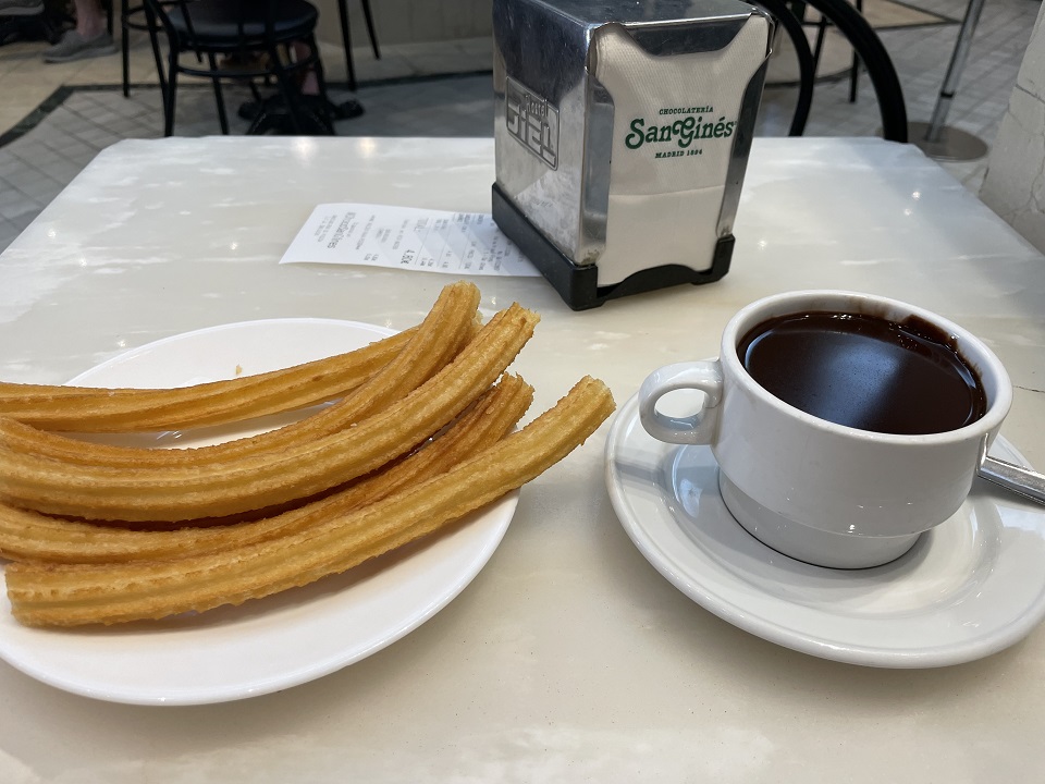 When my order arrived, my eyes anticipated the joy the freshly made churros dipped in chocolate would bring and my tastebuds celebrated with the first bite. I saw folks drinking the chocolate straight from the cup and while that seemed tempting at first, I savored the churros first by dipping them in the chocolate. One note that in the U.S., the churros are usually dusted with sugar, they are plain at Chocolateria San Gines so no need to ask where the sugar is – the answer is always “in the US”. Once the churros were gone, I tried to drink the chocolate, but it was rich even for me and I couldn’t finish it all.