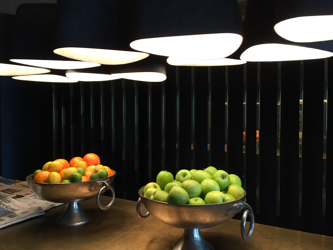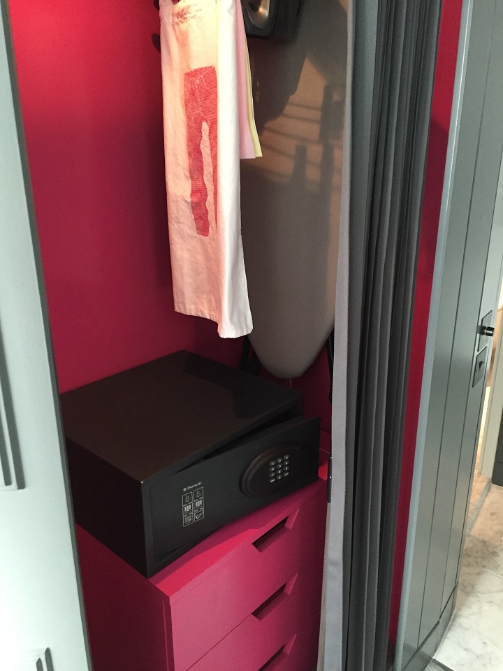 The modern room was filled with all the standard and expected features – flat screen TV, working desk, modern desk chair (funky and functional), seating area, and minibar. The closet was modified with a curtain instead of a door and had the expected safe, ironing board, etc. but was missing slippers and a robe (you can request these as they are standard with higher room categories). The closet had a few hangers and drawers – just enough space. For someone who just left the airport an hour ago after an overnight flight, the bed was very welcoming. While I could have slept in a corner at that point, I really enjoyed falling into the comfort of the bed. It was easy to get a good night’s sleep after covering a few of the glowing buttons in the room.