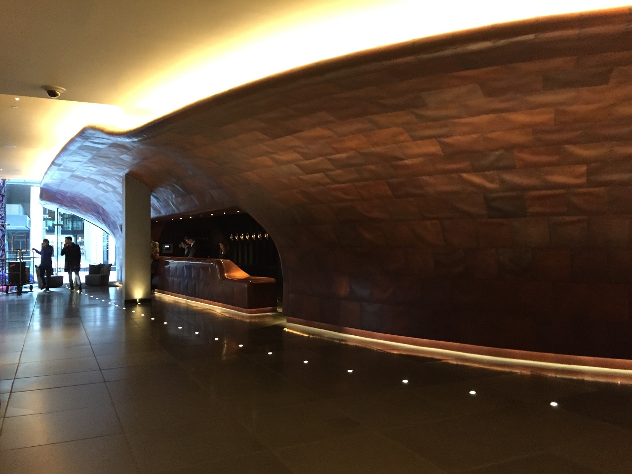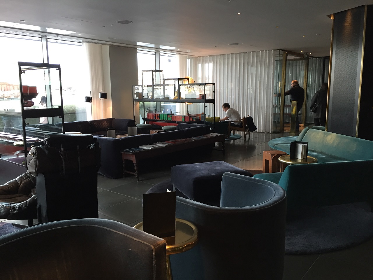 The lobby has a few aspects to it – the vast entry filled with art, seating areas and the front desk with the concierge desk in its own corner. The curved hull of a hallway is a nod to the ships of the past while the nautical reminders are under glass in another part of the lobby. Another lobby welcomes you from the Thames waterside with plush and colorful furniture and food/beverage service. With a cheeky sign you can go left to the restaurant or go straight to the other lobby and bar/restaurant or downstairs to the cozy Curzon movie theatre on site (56 seats is basically a private screening room). So this isn’t a quiet or empty lobby, it’s full of activity day and night with locals and guests which creates a nice buzz and fantastic people watching.