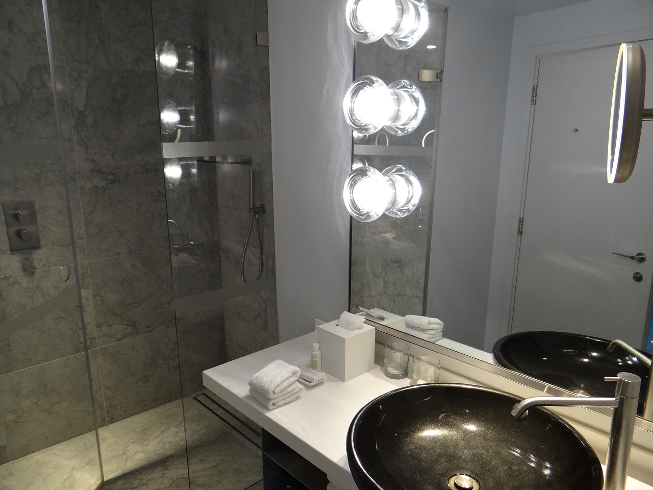 With a large walk-in shower containing a rainfall option and Malin + Goetz amenities, it was refreshing. There were many towels and good water pressure. The standard room does not provide a bathrobe but the concierge, front desk or housekeeping can easily arrange to have one delivered.