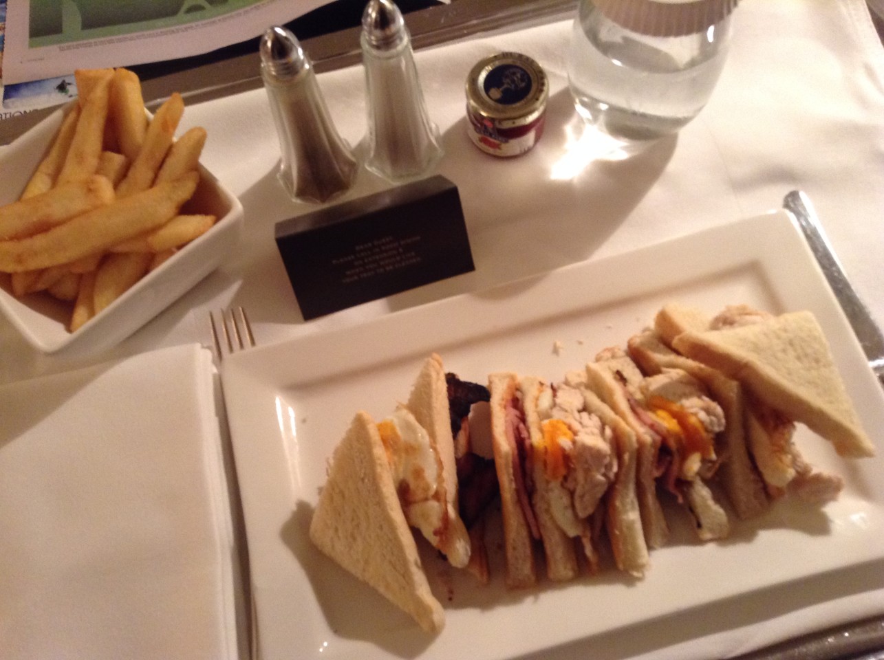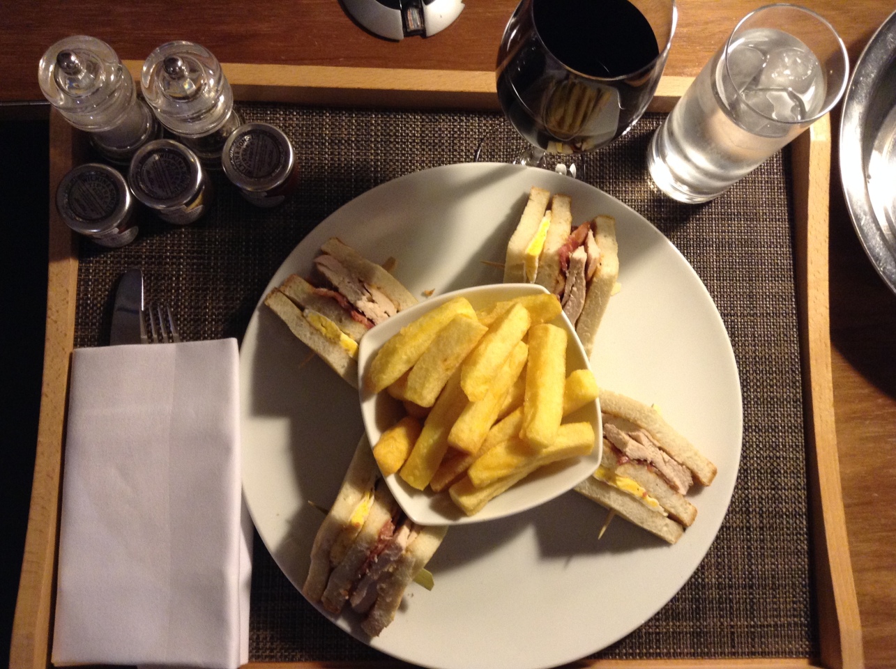 Melbourne (Australia) Sofitel – the club sandwich with chips (fries). Room Service tray with linen cloth and a personal note included. I was exhausted when I arrived at the Sofitel from a long journey and just needed to eat, shower and get sorted to explore the city.