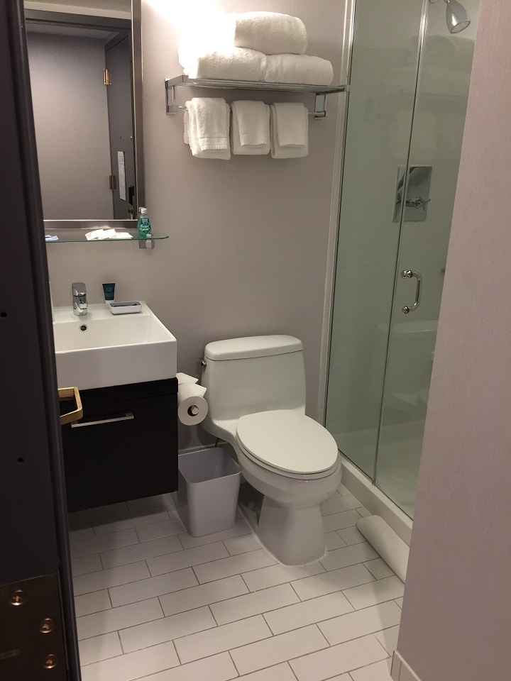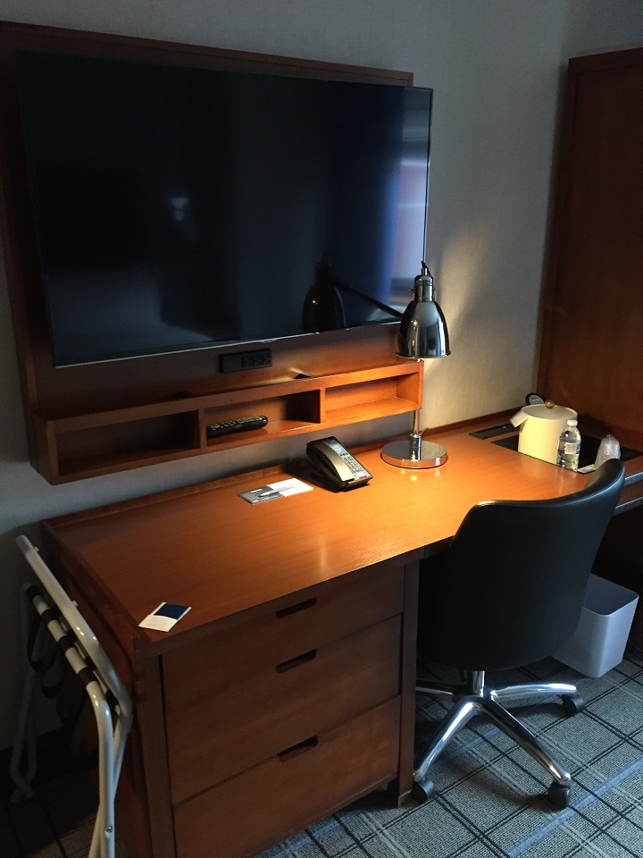 The room had a full length mirror, flat screen tv, ample desk working space, free bottle of water (usually a SPG member only benefit but at the Four Points Times Square it’s standard for all) and many outlets.
