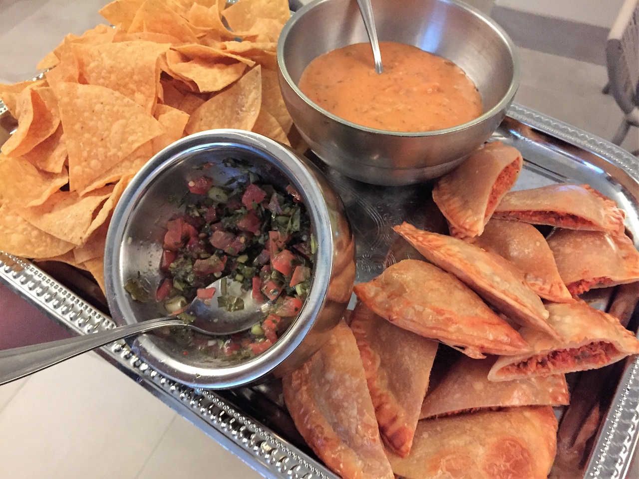 The lobby bar was surprisingly crowded the night I arrived and the day I left, from Happy Hour into the late night. On the Wednesday after check out, the lobby bar was hosting a happy hour with free appetizers that the chef was walking around. He had chips, dip and empanadas on the first go round and said he had more to bring out.