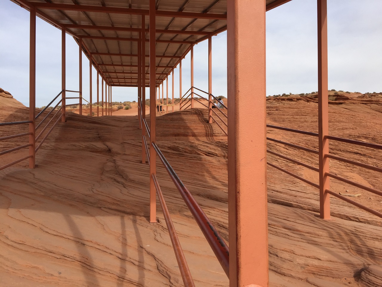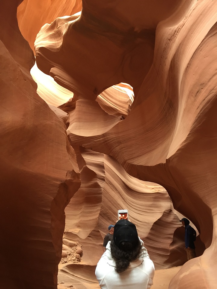 During our visit, there were only three other small groups touring the canyon. Only two tour companies traverse the Lower Antelope Canyon. Note that in high season (summer), the waits to enter the lower antelope canyon can be hours (yes hours in the sun and heat) due to the limited capacity in the canyon so they have installed a cover to wait under at the entrance. I’m not sure how happy I would be to wait hours with tons of people. So I’d suggest going early or late if you and your camera phone just want photos – for photographers, there are different tours for you and your tripod.