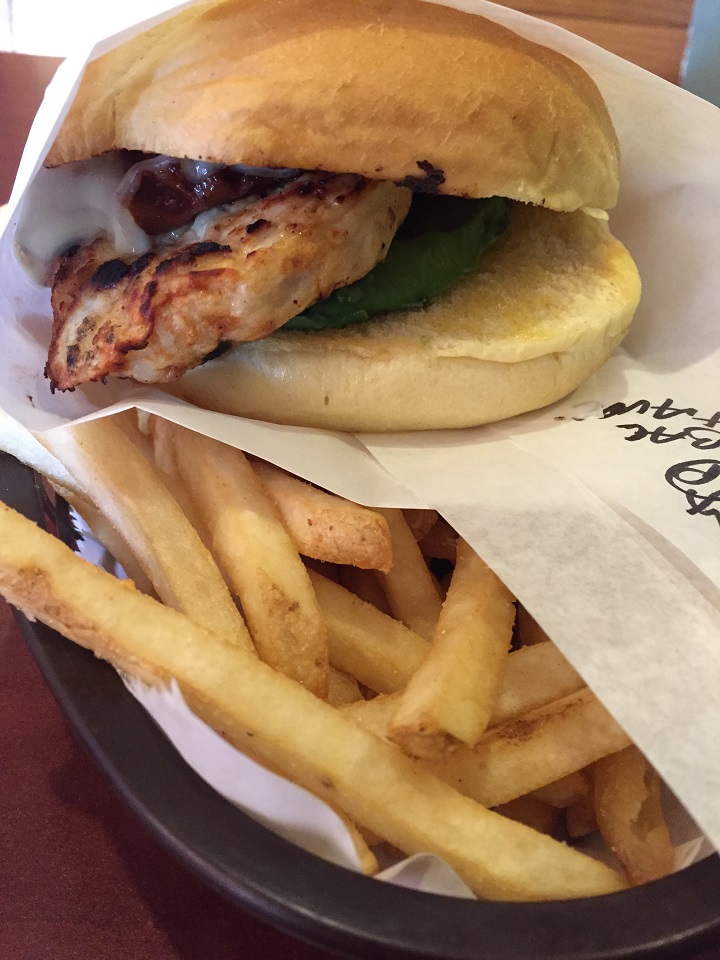 There aren’t many food outlets in the area so I crossed the road to the strip mall of shops where the local burger (and ice cream) place, Slackers, was recommended for a grilled chicken and bacon sandwich with fries. They offered local beers, cookies/desserts and a plethora of burger options. It was busy with locals which is always a good sign.