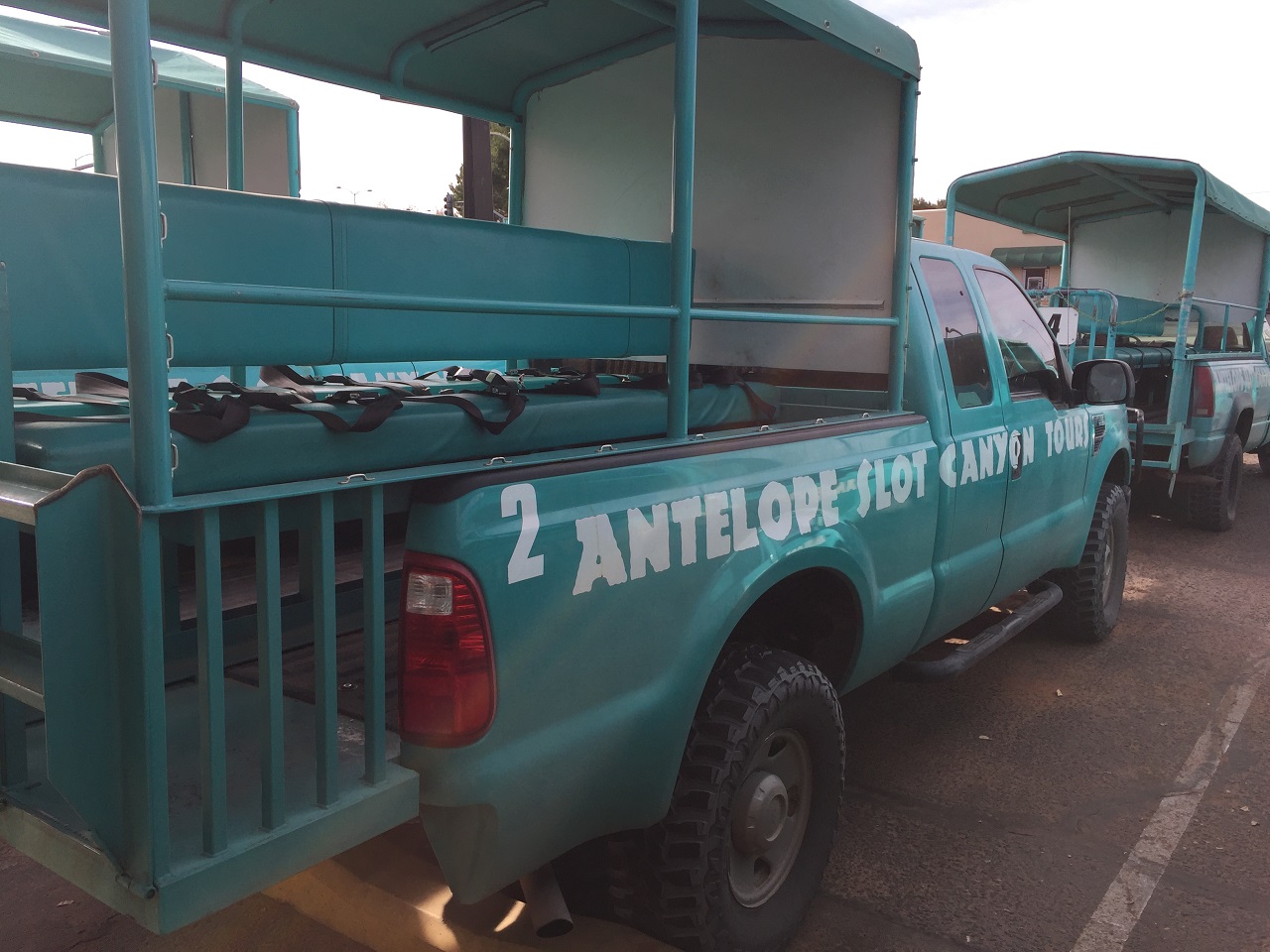 The night before at the insistence of the hotel staff, I moved my Lower Antelope Canyon tour until after lunch in order to do the more popular Upper Antelope Slot Canyon tour. The meeting point was off the main road and had limited parking (so you may need to go earlier or park across the road). The trucks were filled with 10-12 people and since I had seen these trucks in the Caribbean, I knew they were going to be bumpy and dusty for the off-roading portion of the tour and murder on my back and hips so as a solo I was happily offered the front seat with the driver since he was seating in pairs of two in the back to share seat belts.