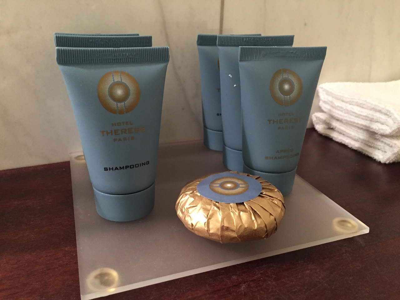 The bathroom felt a bit smaller in layout than Mom’s but was fine for me. The toiletries were local and lovely with a nice scent – one annoyance is that they have the little foil seals that are hard to peel off especially, if like me, you are in the shower, your hands are wet and you lose patience so you squeeze really hard to pop it open.