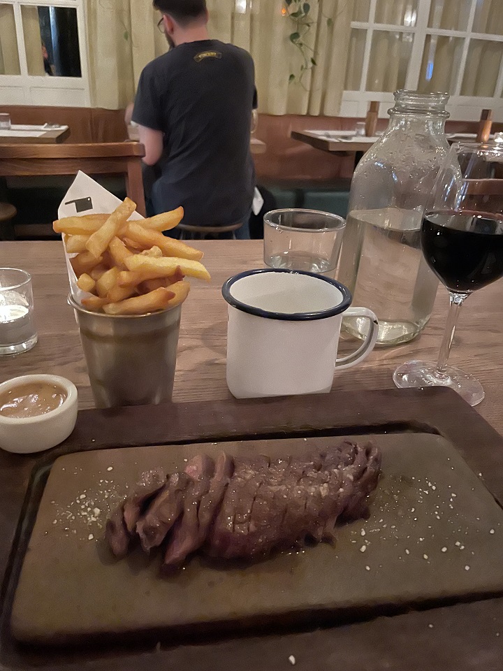 - Flat Iron Steakhouse – affordable flat iron steaks with popcorn at all tables