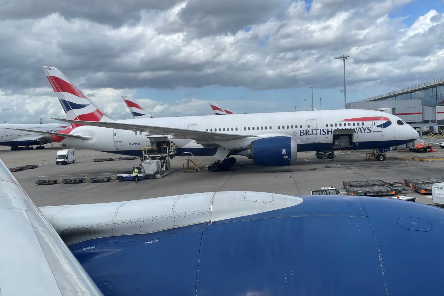 Boarding at LHR T5 – Now here is why you get to the airport three hours in advance – boarding tends to start an hour early in my experience especially if they need to bus everyone to the plane. So you need to check in, tag and load your own bag, go through security, buy souvenirs, eat/drink in the airport and then get to the gate about an hour early when its opens and that might involve a train and those escalators or a bus.