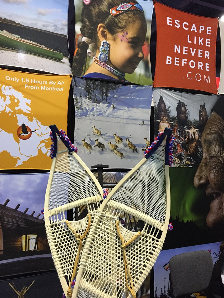 When I went looking for the guy from Nepal (he was on an extended break), I saw the snowshoes at the next booth. I couldn’t pronounce the destination name of Eeyou Istchee Baie-James and wondered “Where is that?” when I saw the banner that said “we’re 90 minutes from Montreal by plane”. Ok, Canada I know but this is a region of Quebec that I had no clue about. The area is home to three distinct cultures – the Cree of Easter James Bay (Ndooheenou), Inuit and Jamesian (predominately French-speaking non-aboriginal residents). I was intrigued by this weekend getaway summer promotion for $589 CAD per person (excluding airfare) to be immersed in three cultures while enjoying Canadian wilderness with a hike or canoe adventure while dining and learning about the people. The website is aptly named Escape Like Never Before and maybe I will.