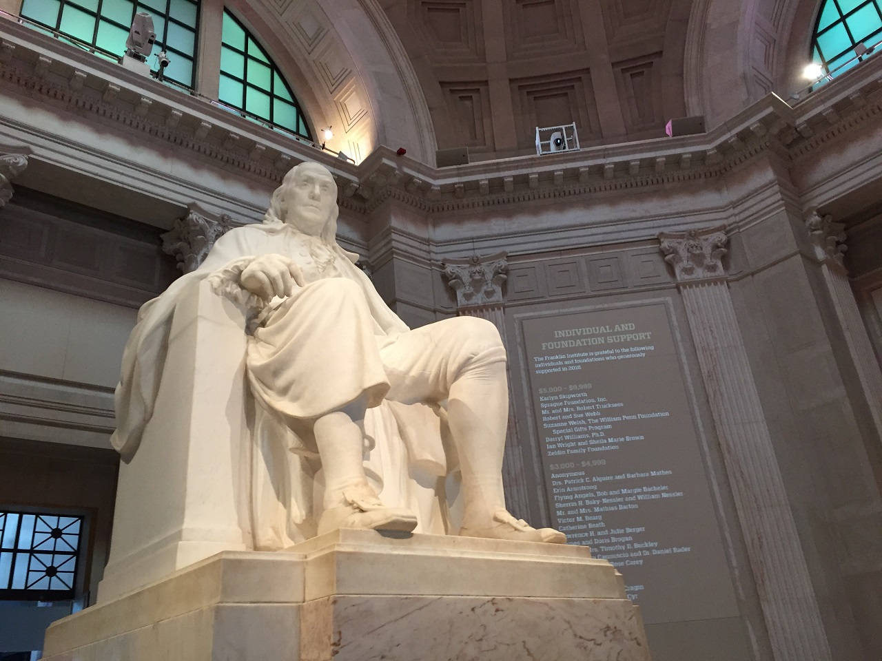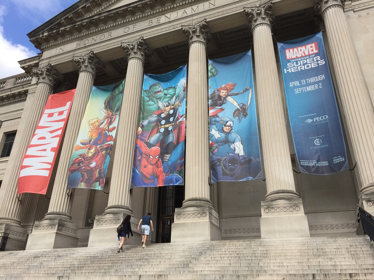 One of my favorite “Philly” iconic views is at the Franklin Institute. Between the front entrance and ticket area is Ben Franklin statue in the soaring domed atrium. I’ve been visiting Ben for over thirty years now, he doesn’t age and frankly my sense of adventure doesn’t either – I’m still a kid discovering something new in the science museum. I wonder what he would think of the science, imagination and the storytelling that Marvel begat.