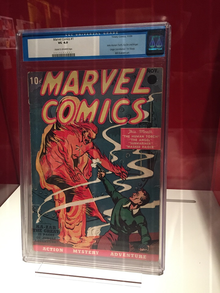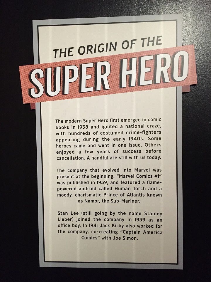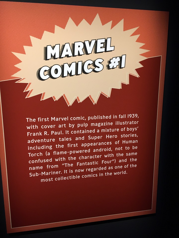 The short film gives you a peek into the early days when Stan took over a fledgling paper. Once the 12 minute film ends you can begin the visit. There tends to be a bit of a bottleneck here to read the panels and see the first comic book produced (worth millions!). Once you get past this hallway the exhibit opens up and gives you the freedom to wander about.