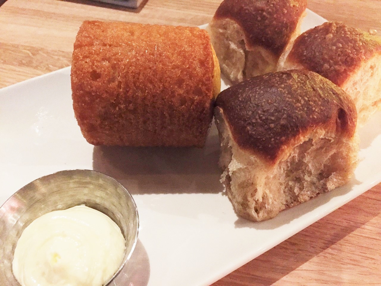 This is where my inner fat girl decided gluttony was on tap for the night. She shunned any thought of a vegetable (there were many to choose from). A bread plate was placed with fresh homemade rolls and then the server motioned a soup can and out popped homemade corn bread (hello bread, I’ve missed you). My friend and I split the cornbread and then ventured into a roll each.