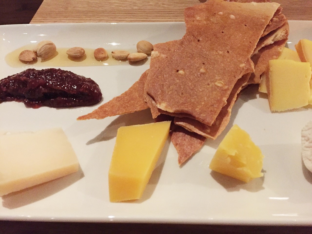 My former colleague met me for a late lunch on Monday and the manager came over to apologize for the “spinach incident” (noted in my file?). He sent over a cheese tray (I notified the server that I’m lactose intolerant, so the manager returned with a charcuterie tray – who am I to say no?).