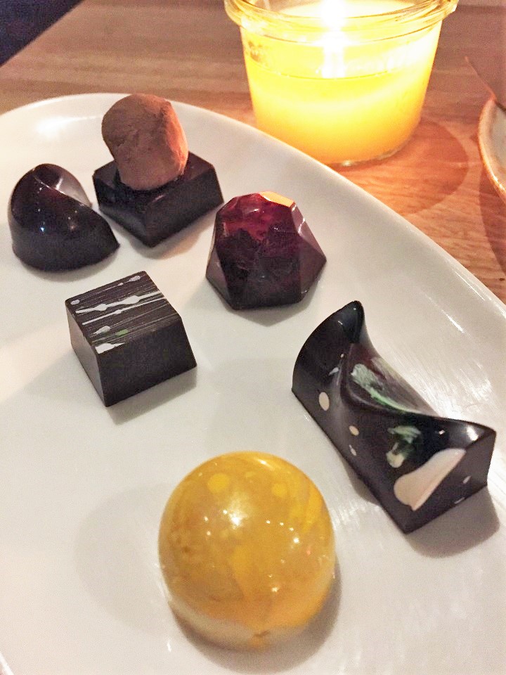 Chocolate, Salt, Whiskey, Chocolate and Hazelnuts was the clear winner for me (I had to skip the caramel ice cream) if only for a few bites (I brought the rest home). Since I had inquired about the bon bons, our server was all too happy to oblige (dear doctor, I’ve gain weight this month due to Anthony deciding we must enjoy all of the indulgences at Urban Farmer Philadelphia). I could only manage the raspberry on site as I had a bit of wine left to finish. I put the rest in the takeaway box and gave them to the hotel staff at the Hyatt at the Bellevue where I was staying for the night to use expiring points. They were quite happy.