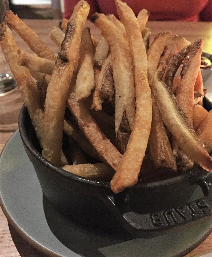 And then my lovely 8 oz. grass fed tenderloin arrived cooked perfectly (photos of steak are never good) with a side order of fresh cut farm fries. My friend ordered creamed spinach with the au gratin topping and despite the outside temperature of the dish, the inside spinach was barely warm so she sent this back and it returned not much hotter for her (the server and manager apologized and didn’t charge us for this). Her steak wasn’t as medium well as she wanted (I think she got my medium steak) so she sent it back to cook a bit more.