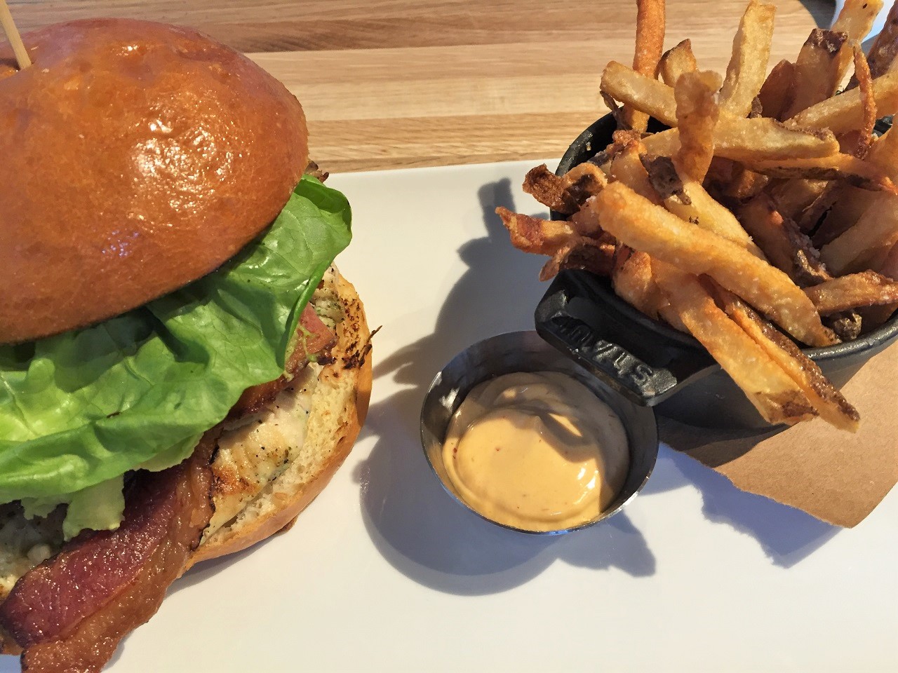 Photos from lunch – my friend ordered the deviled eggs, a turkey panini with a side of fruit and the chocolate whiskey cake. I ordered a grilled chicken sandwich with bacon and fresh avocado side of fries. Sadly, there is no cornbread at lunch.