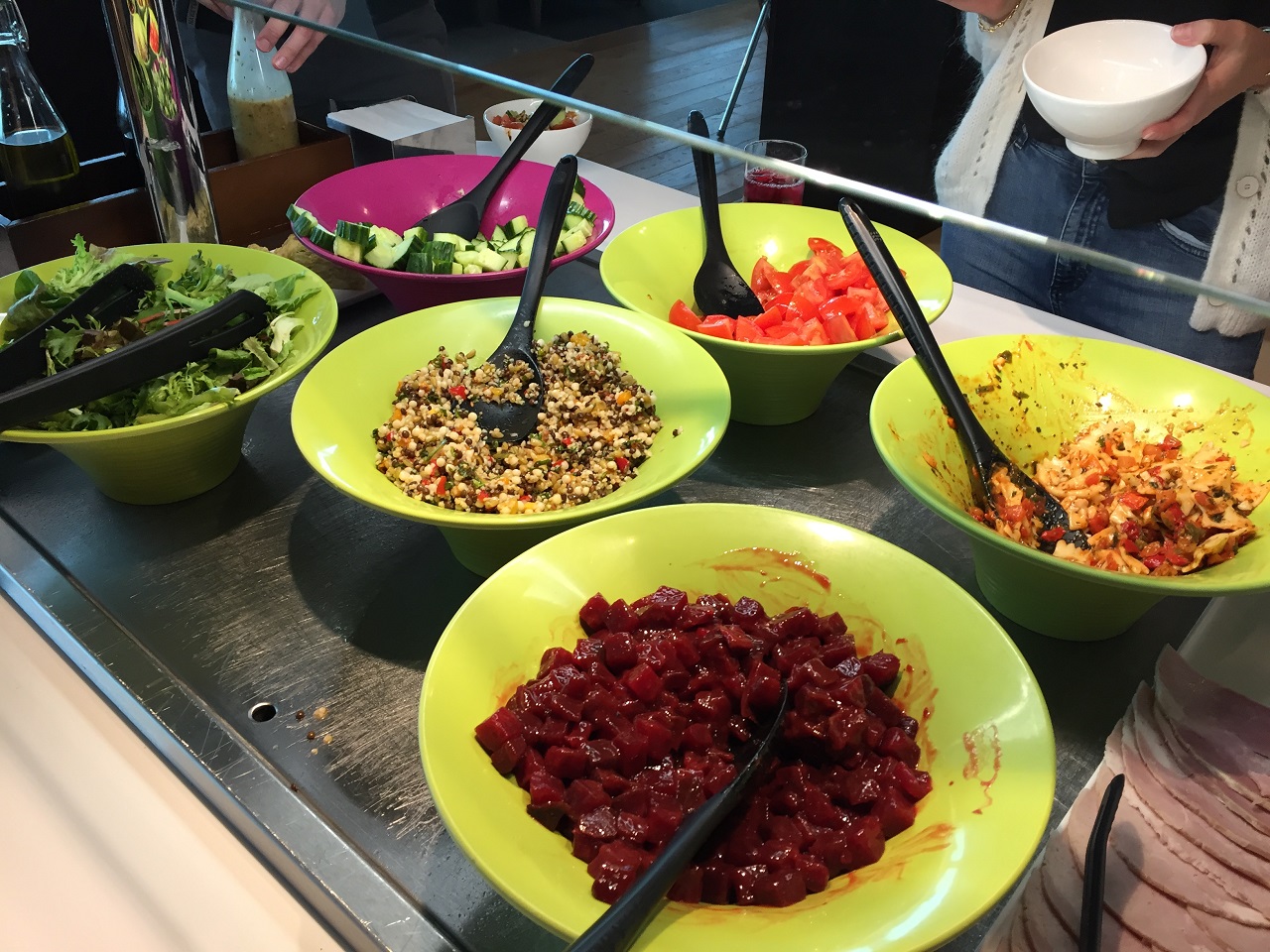 Lunch selections included salad, sandwiches, soup as well as hot options – pasta, beans and a curry. Lunch time was quite crowded so the food turned over quickly and was refreshed by staff.