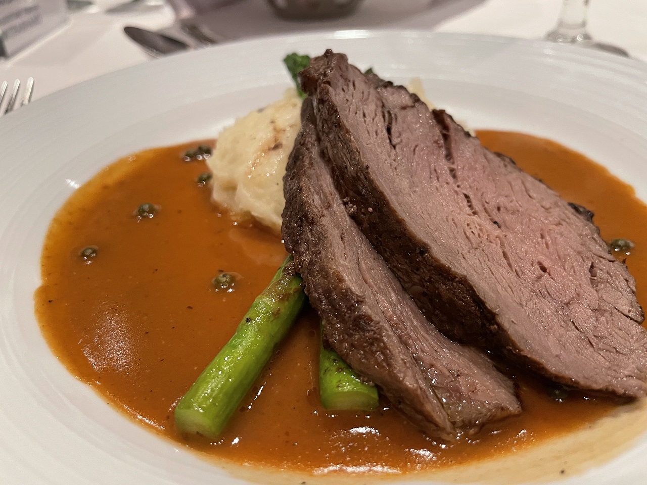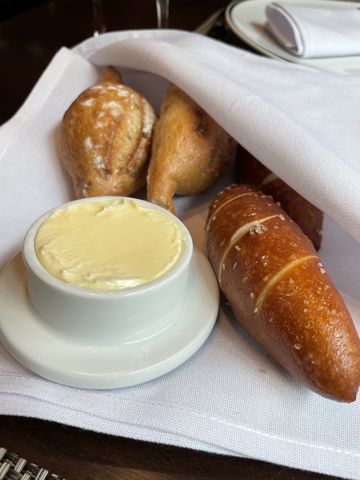 The running joke at dinner was that you had to ask for real butter and the first thing I was served at CHOPS was a plate of fresh bread and a vat of real butter. The MDR bread wasn’t worth the carb calories but when I saw the fresh hot pretzel bread in front of me, I was in lust. This Philly girl can survive on soft pretzels so this was a touch of home so far away. I quickly scarfed down the pretzel bread and asked if I could take the other pieces back to my cabin (the waiter made me fresh basket to take with me and I added the other pieces as I was not wasting freshly baked bread).