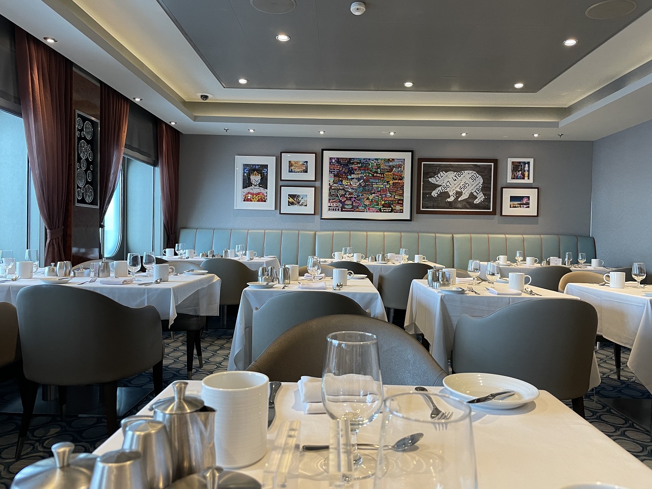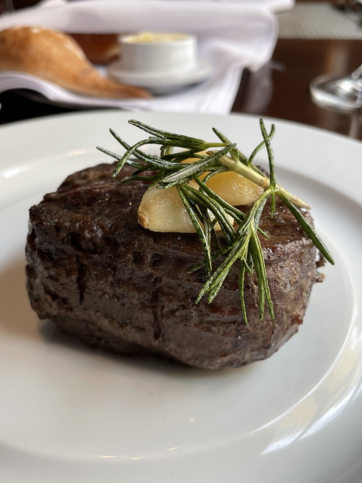 I decided I would have one sea day with a special steak lunch and go all out at Chops Grille. The other tempting option was Jamie’s Italian (Jamie Oliver’s restaurant concept) or Wonderland which is for foodies as the foods explore the themes of Sun, Ice, Fire, Water, Earth, Dreams. I wanted a proper steakhouse meal. The day I decided to do that was a day the clocks pushed forward one hour so noon didn’t exist – we changed from 11:59 am to 1pm. Keep this in mind if on a transatlantic or transpacific cruise with time changes each day.