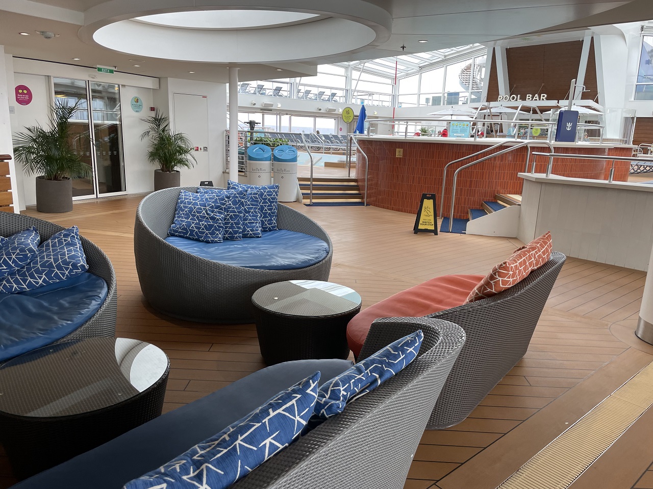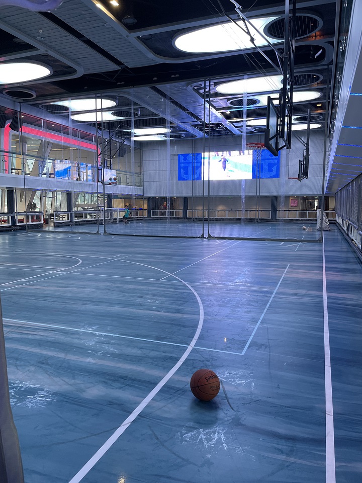 Areas of adventure are in the back of the ship with the popular Flow Rider surfing experience, Rock climbing wall, I Fly skydiving experience and North Star observation pod. All of these activities are free but definitely need to be booked in advance, I suggest doing this on Deck 15 when you first board. Key cardholders have special times blocked but reservations are still required. The activities deck also had a multi-purpose area that was used for basketball, bumper cars (UK dodge-ems) and a variety of other sports. Note the times in the daily planner on your app to make sure you don’t miss out on your favorite sport.