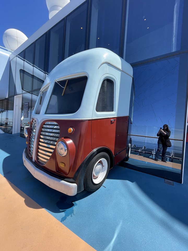 There are two aspects to art on a cruise ship – the art gallery that I despise and the cruise ship art collection. Ovation of the Seas had a fantastic art collection throughout the ship. It was a lovely surprise throughout the common areas – hallways, stairwells, elevator banks. I found taking the stairs exposed me to the many art pieces from international artists. Some the art was wonderful, others made me wonder. The larger-than-life art pieces on the outdoor deck found many fans taking selfies. The ship did not offer an art tour, hopefully this changes in the future because there are many great artworks to discover. I’d rather buy the art I experienced throughout the ship than anything in the art gallery.