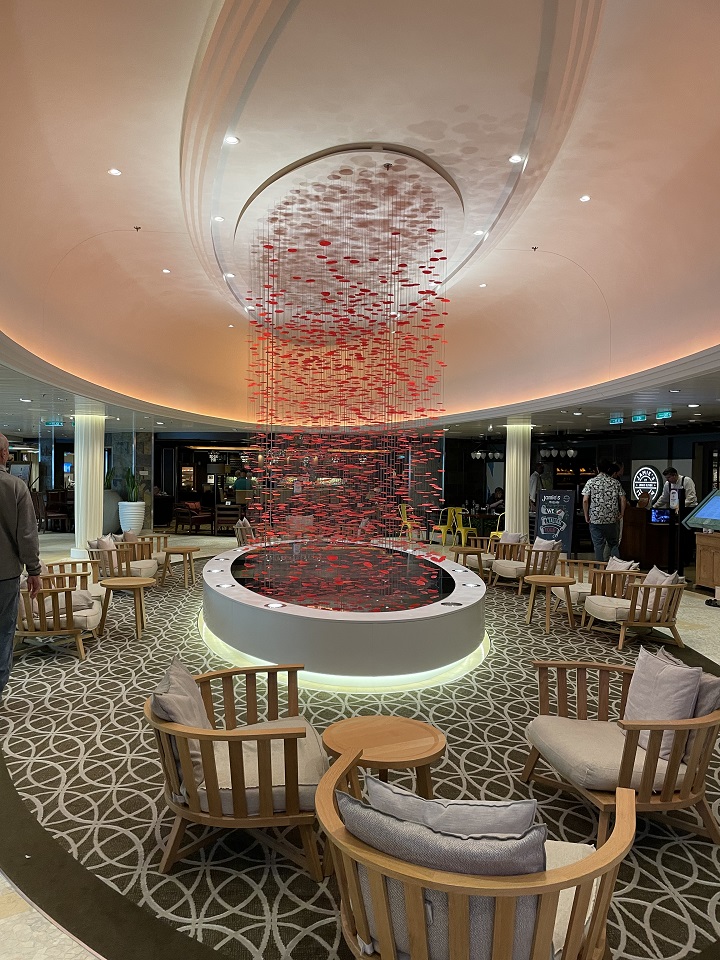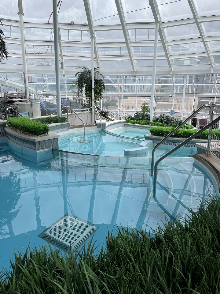 Once lunch was over, I bid adieu and wandered this Quantum class ship to find the many restaurants, wine bar, theatres, library and of course the spa. I was quite engrossed in the massive art collection that covered the ship – in the elevators, on the stairs, in the common areas and outside on the top deck. The ship also had a plethora of pool options – outdoor and indoor, a children’s pool area and the adults only solarium. There would be no issues with finding somewhere to sit as there were many options and no one saving seats so you could always find a space.