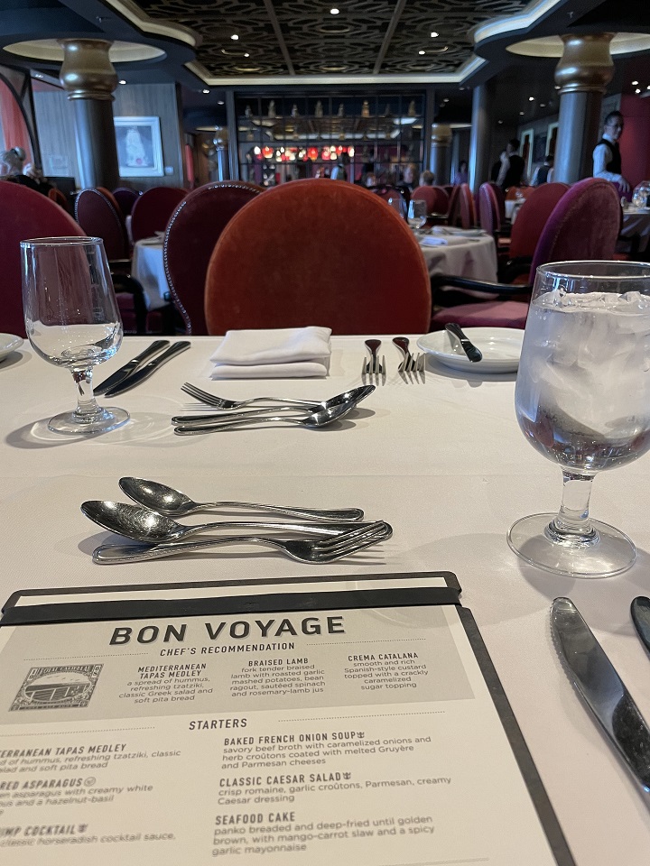I had joined the cruise sailing Facebook group and replied to a post to join a solos dining table the first night. Our table of eight met the first night – many had been on the ship since Sydney and only a few of us joined in Hawaii. The Main Dining Room (MDR) service was slow – our 5:30 dining time should have allowed enough time to enjoy our meal and still make it to the 7:30 show and a few times we left before dessert to make the show. Since the orders follow the appetizer, entrée, dessert timeline, we had to wait for each course to be served and with eight people that took some time. As I only wanted an entrée, it was a long wait.
