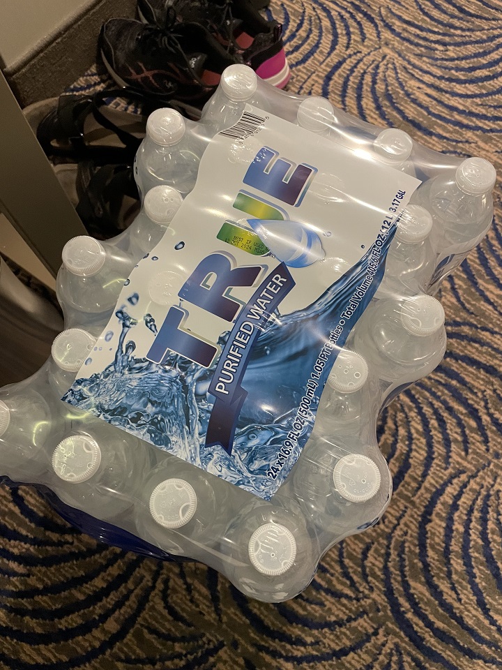 I drink water all day every day. While I might enjoy a glass of wine with dinner ($8-16 per glass plus tax and tip), I don’t drink enough to justify the cruise drinks package which can be expensive ($200+ a day per person). Bottled water is often included in the premium drinks package. Some cruise lines, like Royal Caribbean, will let you carry on water, soda and even a bottle of wine so you need to know the rules. So for the Hawaii to Vancouver cruise, I chose to bring my own refillable bottle and also buy a water package in advance. Having water in my room and at the ready made the most sense as trekking from my cabin on deck six forward to the buffet on deck 14 aft was ridiculous for free water as I would have emptied the bottle before I was back at my cabin. Royal Caribbean offered a few bottled water options and I waited for a “sale” before buying for $24.95 a case (24 bottles 16 oz.). Yes, it’s expensive relative to what you pay at Costco but given that bottled water on a cruise ship is generally $3 plus tax and tip, the advanced pricing was a great deal. For those with a water preference, know that water brand is not guaranteed and can change. It also may not be spring water but distilled as the title is “bottled water”. The water was to be in my cabin when I arrived and it wasn’t so I had to go to Guest Services to ask them to deliver it which they did later that night.