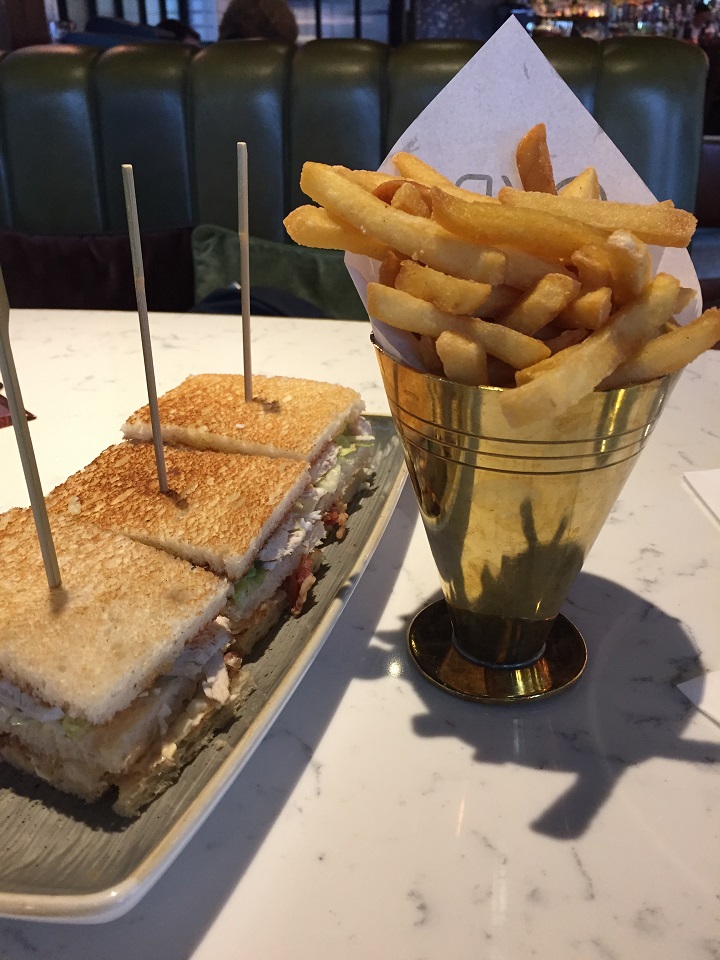 Prior to happy hour, I was hungry and ordered a club sandwich and chips (fries) at The Distillery Bar. We stayed for Happy Hour when a friend came to meet us. We were offered complimentary snack bowls. We were then explained the 2 for 1 deal. You can get 2 of the same drinks for the price of 1. So two glasses of the same wine or two glasses of x cocktail (there are limits on the cocktails and liquor brands) or two pints. I ordered one glass of wine and when closing out the check, the server almost insisted on getting another glass of wine (it’s free she said!) and taking it to my room, which I did. They also offer a Gin Masterclass which looks fun, sadly we didn’t have time to do it this visit. On the friday afternoon, the staff were grilling burgers outside for takeaway which was fun if you are in the area.