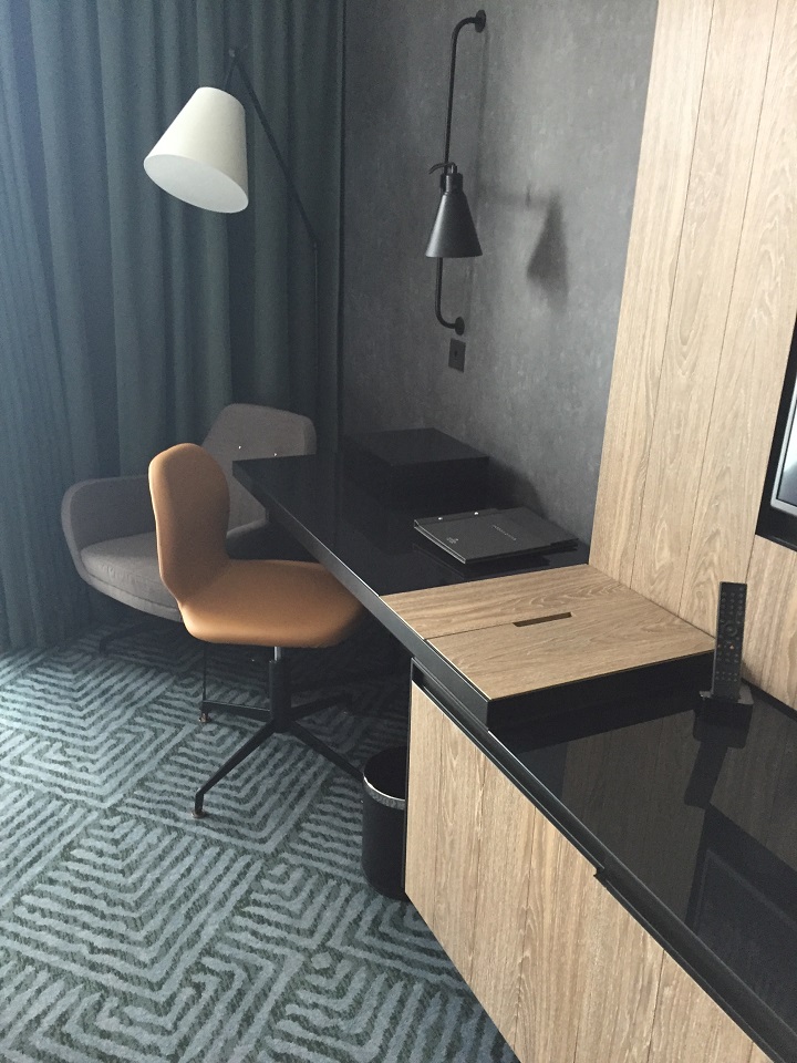 We arrived by foot rather than by taxi in the arrival driveway so had a laugh when the bellman outside in the arrival driveway saw us and ran (sprinted) over to get our bags. They were friendly and welcoming so I happily stopped and dropped my bags. I went to the front desk to check in while my friend plopped down on one of many comfy seating options in the designer filled lobby to use the fast and free wifi. Check in was quick and friendly and we were quickly in the hotel elevators to our room on the 4th floor. The elevator security requires room key tap to access guest room floors.