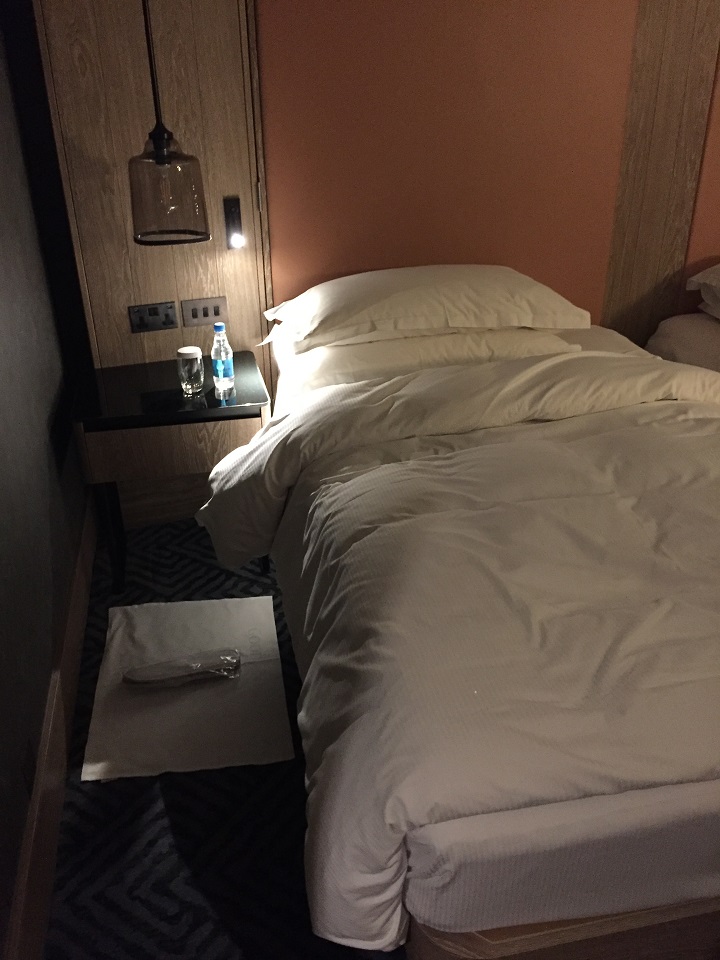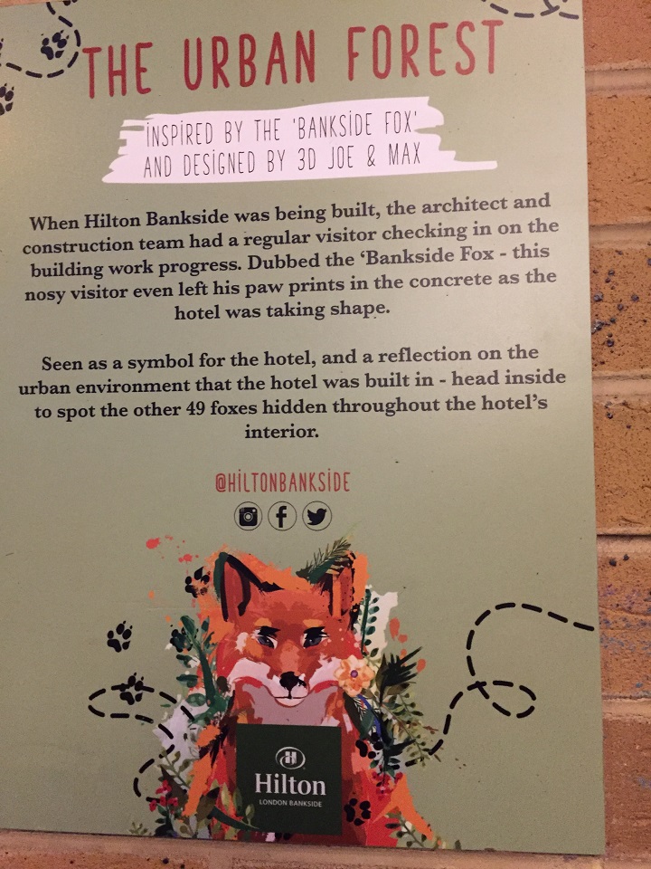 Opening the door to the room, I was pleasantly surprised by the feeling of newness – modern style and design. The textured walls, the metal fox sconce (see info panel about the Bankside Fox at the hotel entrance) and the concrete walk in shower were all bespoke design choices that together made for one comfortable room. Instantly I knew I would like it here and sadly wasn’t going to have enough time to enjoy it. It screamed of a lie in with room service, alas neither would be had. Note the lighting (sun, then clouds then dark) doesn’t show the best of the room but it really was nice.