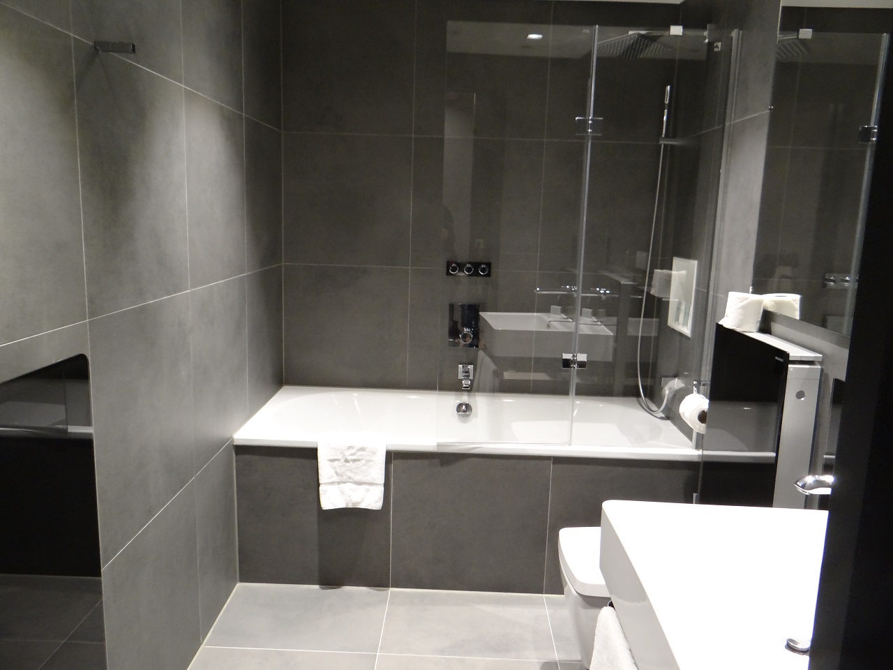 Our flat was a premium one bedroom with two full bathrooms and a pull out sofa so it could sleep up to four guests. As we entered, we were quite happy, almost giddy to be honest after ten days in a small cruise ship cabin of 110 sq ft. By comparison, the flat was massive and quite impressive. It was only available for two nights so we really lucked out.