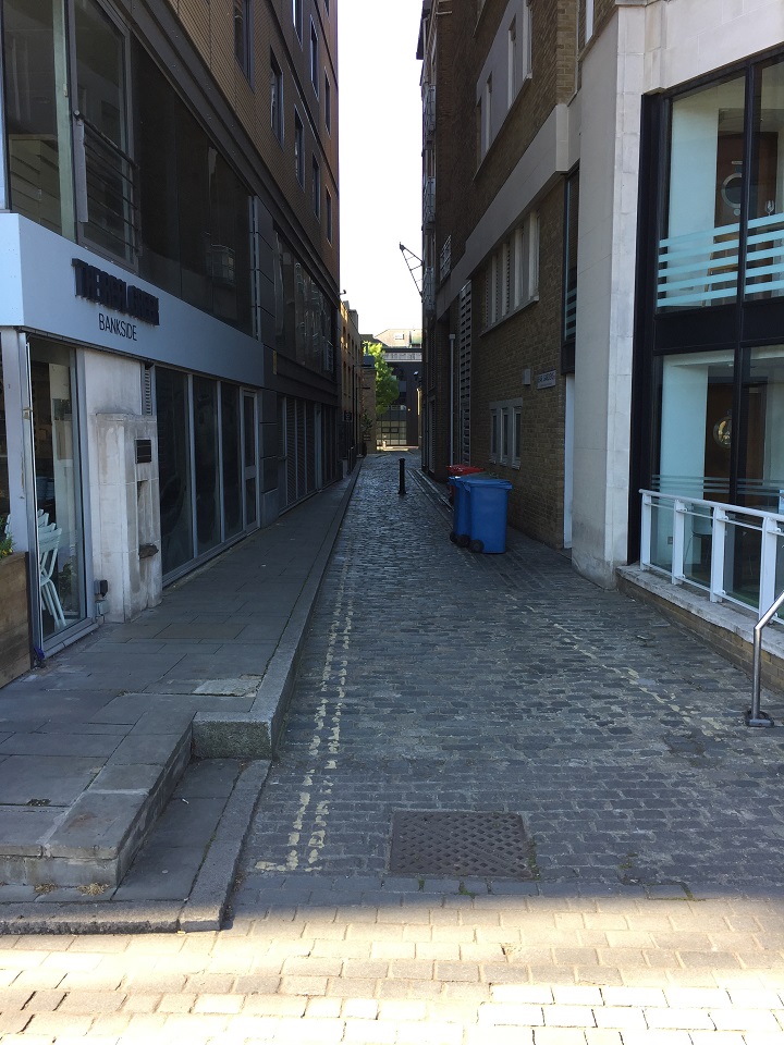 The Native Bankside property is currently behind Porky’s BBQ and a Starbucks. At the end of the alley is Pizza Express and a Greek Restaurant next to EAT and other food outlets. CoOp, Sainsbury and Tesco markets are each a 10 minute walk (next to and across from the Blue Fin building and Hilton Bankside). Early morning views below –
