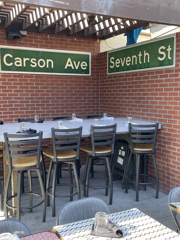 My breakfast destination was 7th & Carson Restaurant named for its location. Owned by a Brit who was busy setting up for the day by bringing chairs out to the sidewalk tables, he welcomed me and I chose to sit outside in the back patio. It was a crisp 60-degree sunny day and I left the snow and frigid temps at home so for a February brunch, outside was perfect. The menu was packed with breakfast and brunch options but I stayed on the breakfast side ordering the eggs and bacon with potatoes and sourdough bread.