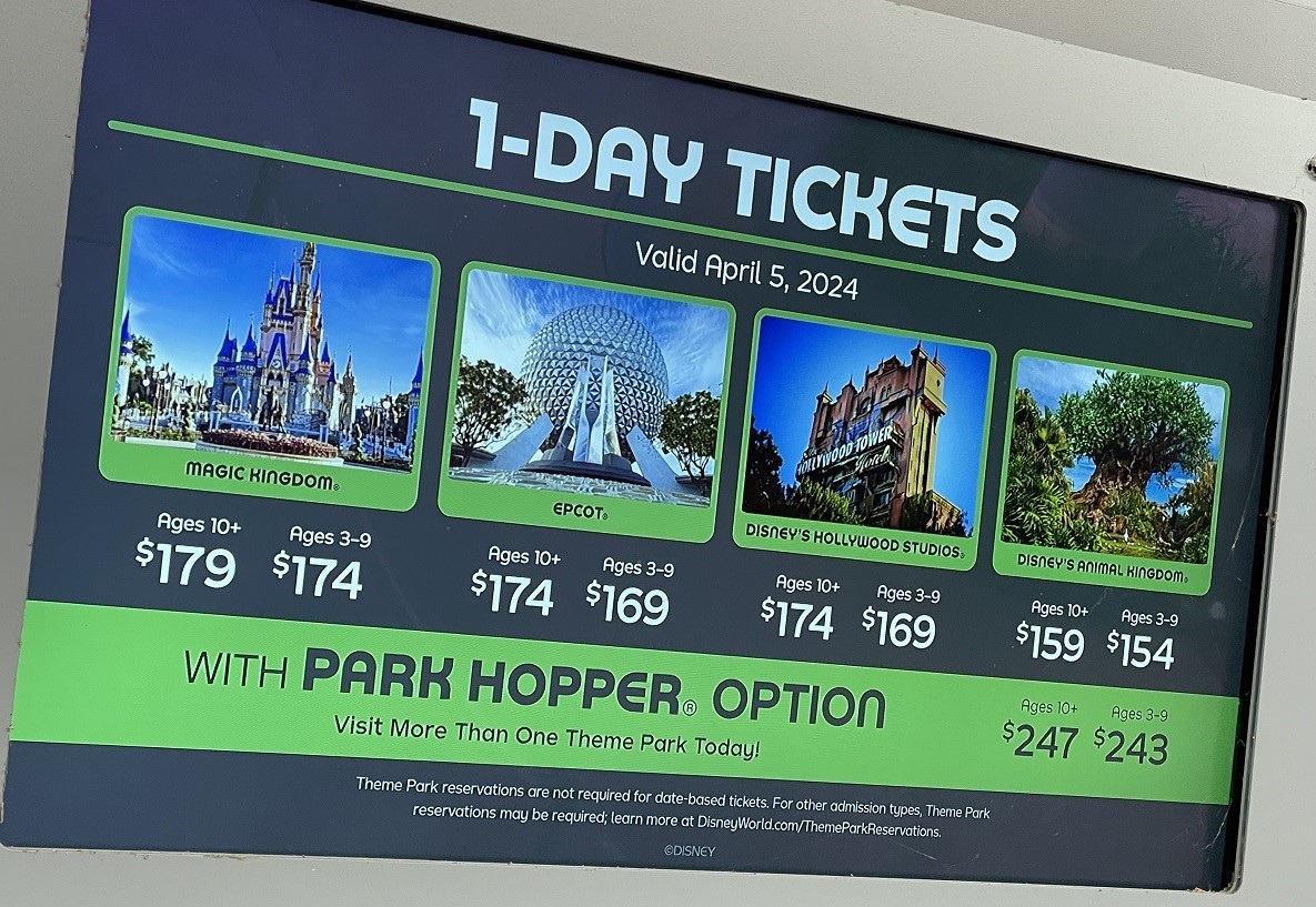 - Two-day Park hopper ticket cost $434.88 April Friday & Saturday (prices are dynamic and vary by day).