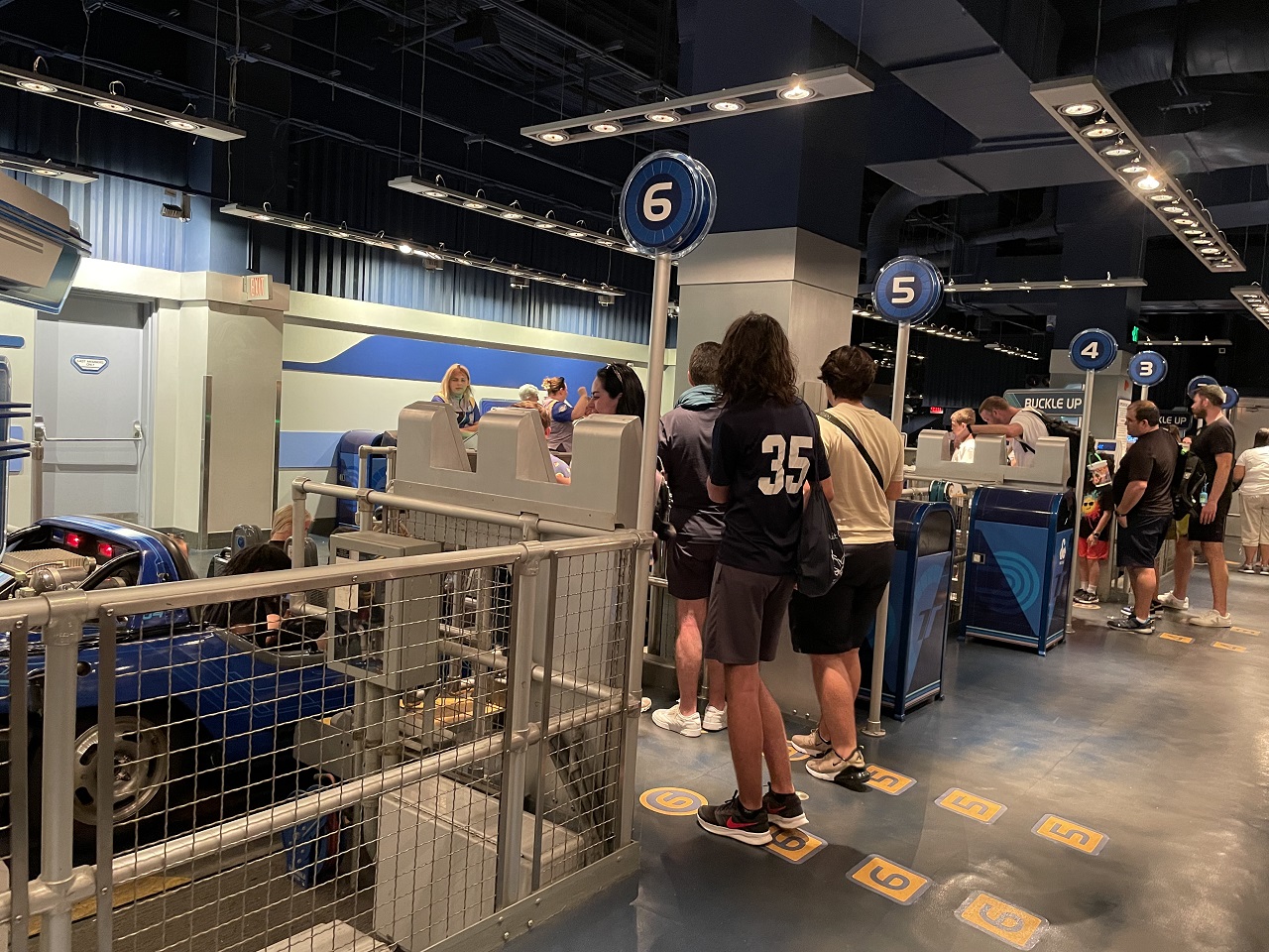 I made my first mistake navigating the lines. There was a regular (standby) line with a 120-minute time (yes, a two hour wait), a lightning lane entrance and a single rider line. I had booked a lightning lane time window on my Disney Genie app and asked a cast member where to go and she said single rider line was best as the wait was shorter. She didn’t point me to the Lightning Lane which was where I should have gone but didn’t know better at the time. While I was pleased that I walked through many empty twists and turns in the line, it turned out to be the wrong direction once I entered the hallway of people who were in groups but willing to go solo and skip the design studio interactive room in order to cut down their two hours wait time. I was mad at myself for the first mistake despite all the prep that my sister and niece had done with me. Once I was strapped into the car and took off reaching speeds of 65 mph, I had forgotten that I made the mistake. Test Track has always been a fun ride at any age, even for a grumpy GenX like me.