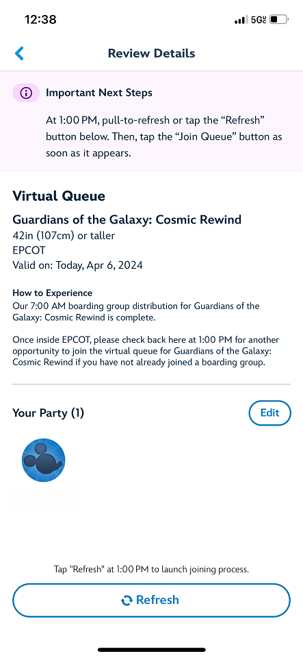 I spent the rest of the morning going from one ride to another based on what was shortest walk and lightning lane timing. When I tapped into one ride, I could book the next time slot on another ride to have in my app agenda. The rules of lightning lane were that you could only book the next ride once you tapped into the current ride.