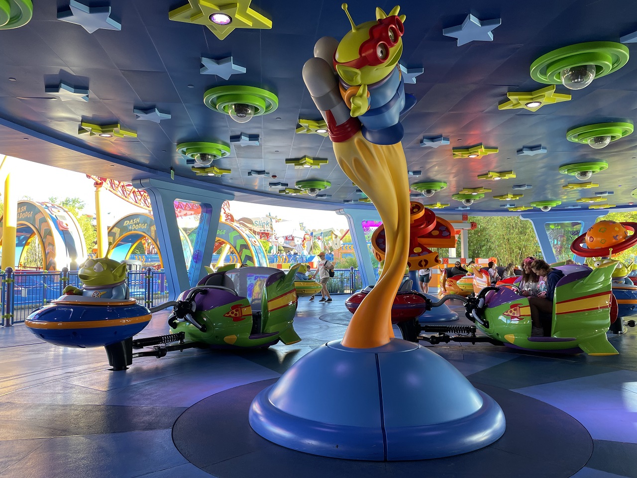The park hadn’t changed much from my last visit more than a decade ago. As a fan of film this park is one of my favorites. When it first opened, the animation group was here for a while as was the movie ride (both are long gone). I walked quickly to Toy Story land in the hopes of snagging a short line for Slinky Dog Roller Coaster and when I saw the line for Toy Story Mania was already 60 minutes my hopes quickly dashed. The cast member with the sign at Slinky Dog said “it’s about 60 minutes which isn’t bad” but I didn’t have that much time to wait as I had a date with Star Wars at 9am so I looked at the empty line for the Alien Swirling Saucers.