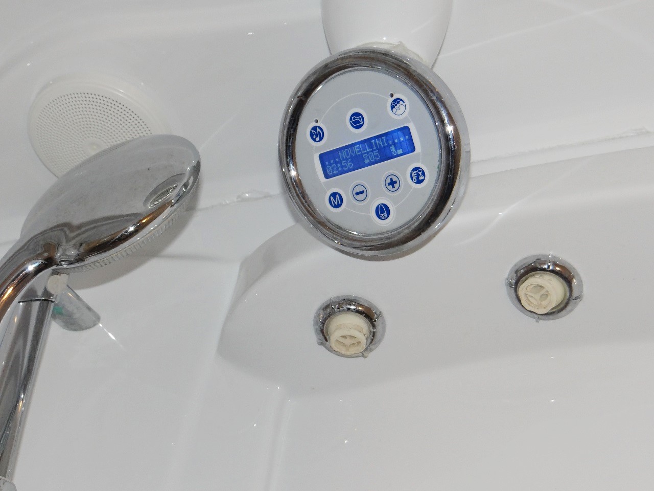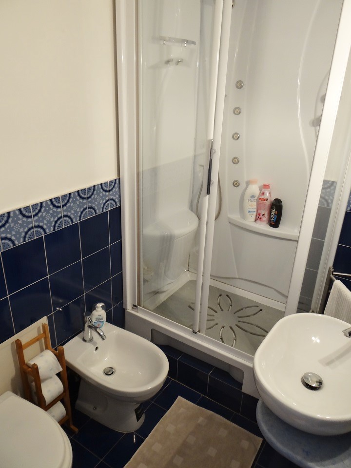 Compact and stocked with shampoo, shower gel, three rolls of toilet paper and cotton swabs. The shower was pointed out as having a sauna function as well as a radio option (neither of which I used). I was put off by the huge step up into the shower afraid I would fall when exiting (I was careful) but this is probably only an issue for me not most folks.
