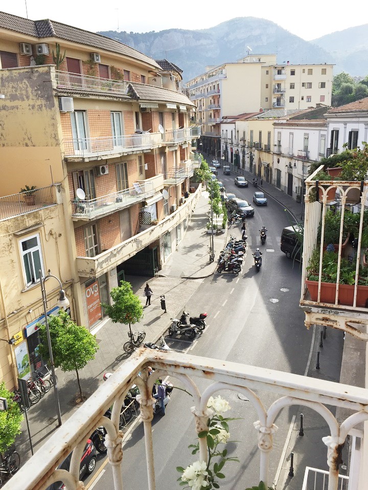 A few miles outside of Sorrento, Piano di Sorrento is a residential area and the B&B is located on the main road. You can walk (although a bit hard without sidewalks) or take the bus at the corner across the street into Sorrento city center. The apartment building is located across the street from many cafes, shops and the police station – it was a quiet area. There are also many ATMs on the street and a fabulous gelato shop (one of many). You know you are in a residential area when you look at the restaurant menus posted outside and do a double take at the prices which seem so cheap in comparison to Sorrento, Capri and Naples that I became accustomed to.