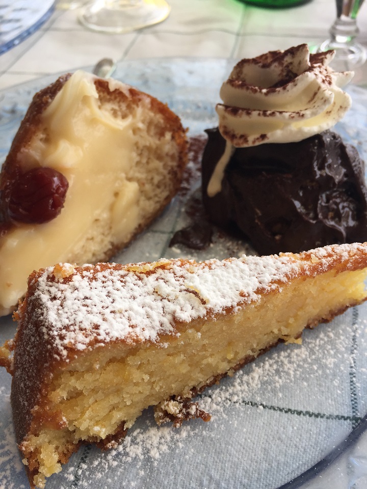 Marcello would normally let his guests eat lunch while he goes to work or eat alone. He felt bad that I was solo so he ate with me (funny to me since I eat alone all the time). He plans out tasting plates to show the best of the local Italian foods. The foods were plentiful starting with an antipasti, followed by a pasta trio and finishing up with a trio of desserts and after meal liquors. Each course was tastier than the last. What I didn’t finish (I mean really, what one person can eat all of this plate?), he happily indulged commenting that he can’t say no. I may have been a bit buzzed after this lunch as I had the red wine to myself and Marcello doesn’t like waste so I drank my wine (he of course was driving so no wine for him).