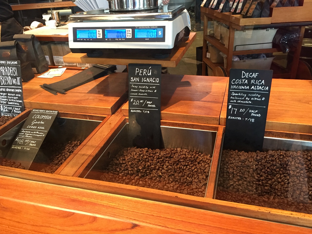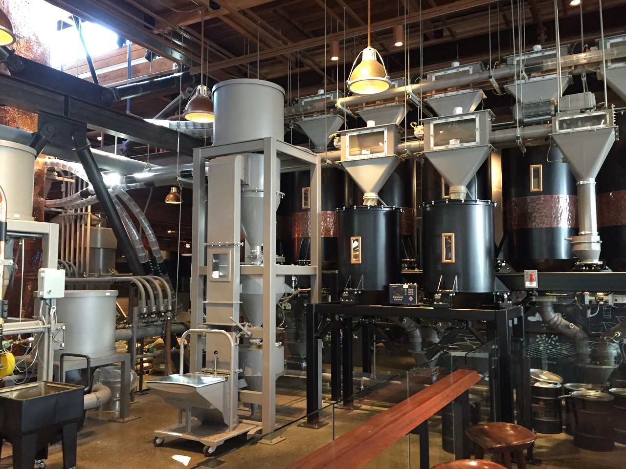 It’s hard to miss the roasting machines and production line as it seems they designed the consumer spaces around the experience of watching the beans fly out and spin every few minutes. With videos on record we were all in awe of the process. A bit silly but still fun even for big kids like me who don’t drink coffee.