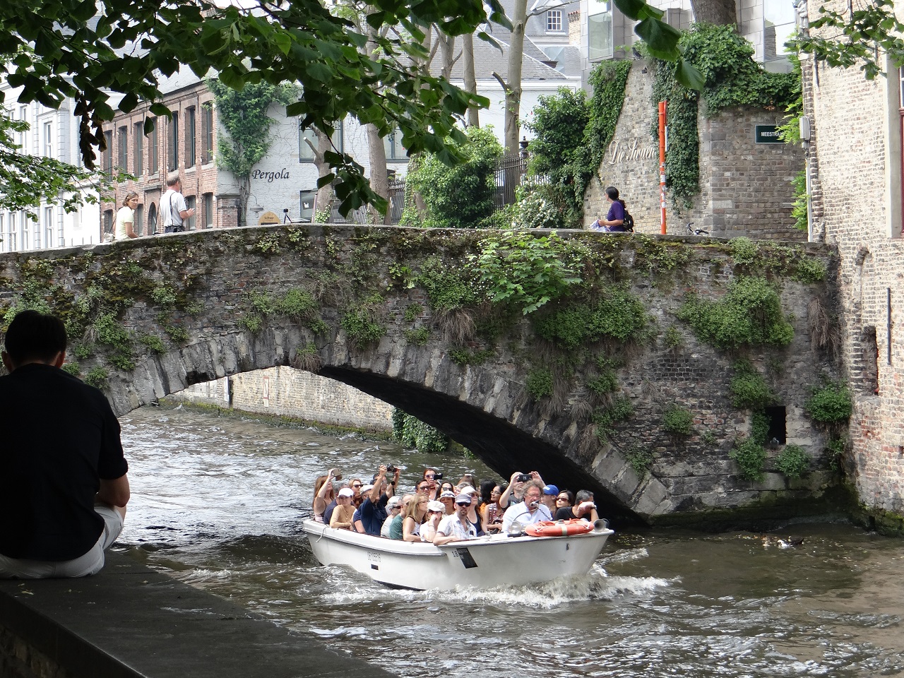When in Rome…..or Bruges… I often shun the very touristy things when I travel but in Bruges, I had to give in to the canal tour. Sure, I already walked a good portion of the city along the canal but why not get in the boat with thirty strangers to see the city from the water. At only €8 at the time (now €10), it was easy decision as I was waiting for my room at Hotel du Tuilereen to be ready anyway.