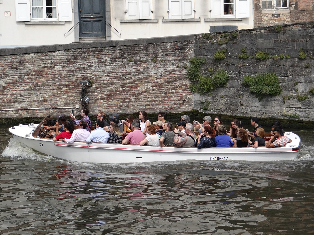 The majority of the canal boat tours leave from two main locations in Bruges when you first arrive (although there are a few other boarding locations throughout the city which are less crowded) – just follow the hoards of people and then come back later when they’ve gone! Tours run generally from 10 a.m. (when the first tour bus arrives) to 6 p.m. (last boarding at 5:30 p.m.) At the street level, the little wooden booth sells tickets (cash only) and then you walk down the stairs to wait in line. I waited until nearly the end of the day when the line was short (20 minute wait) and the boat wouldn’t be as full as I had seen all day.