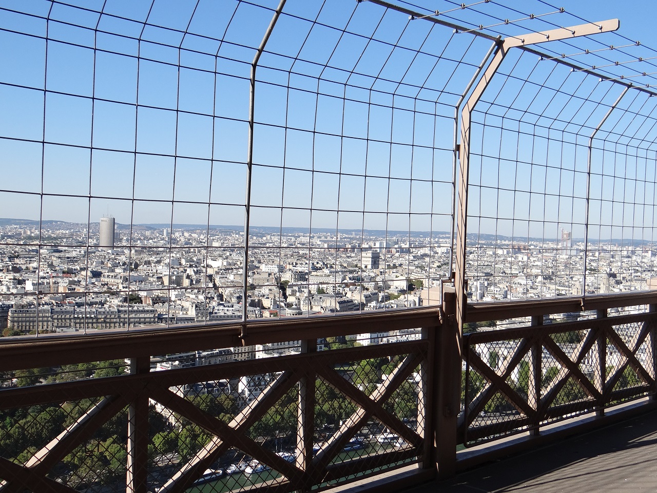 The top has great views beyond the fencing however, the 2nd floor is still amazing with views of Paris.