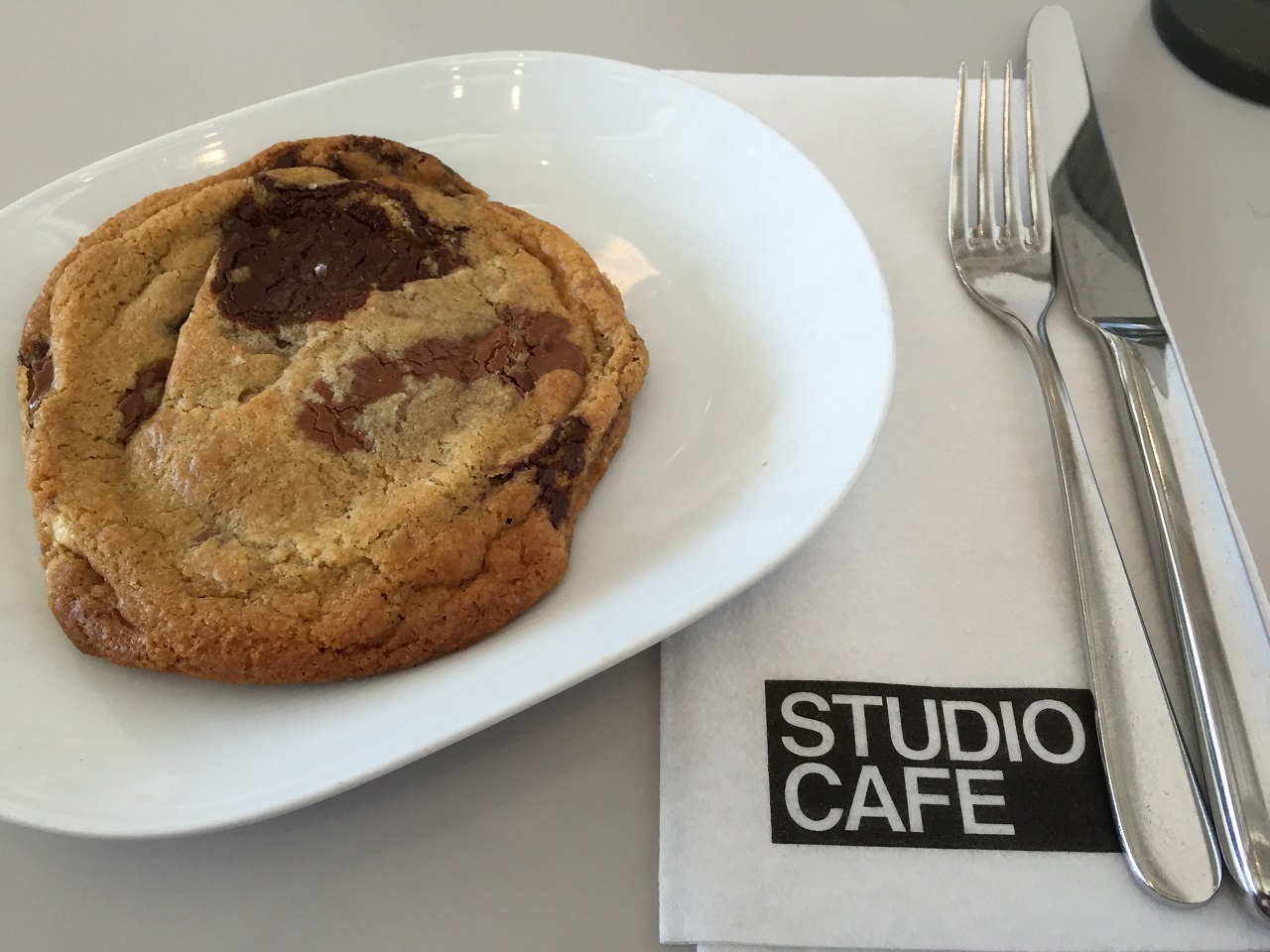 Before our gallery visit, we stopped for cake and coffee in the café. It’s a bright open space with a portion of the outdoor patio set aside for café guests. There is table service and we ordered coffee and sweet treats – Mom & I ordered the milk and cookie (hold the milk), my friend chose the scone with fresh crème. The massive triple chocolate cookie that arrived warm was one of the best cookies I’ve ever had (it’s in my top 5). Service was good and the only disappointment was that we were charged $8 for the cookie, I had ordered just the cookie but they sell only the cookie & milk so despite my lactose intolerance and no milk option for me, I had to pay the full price. That’s a bit cheeky in my opinion.