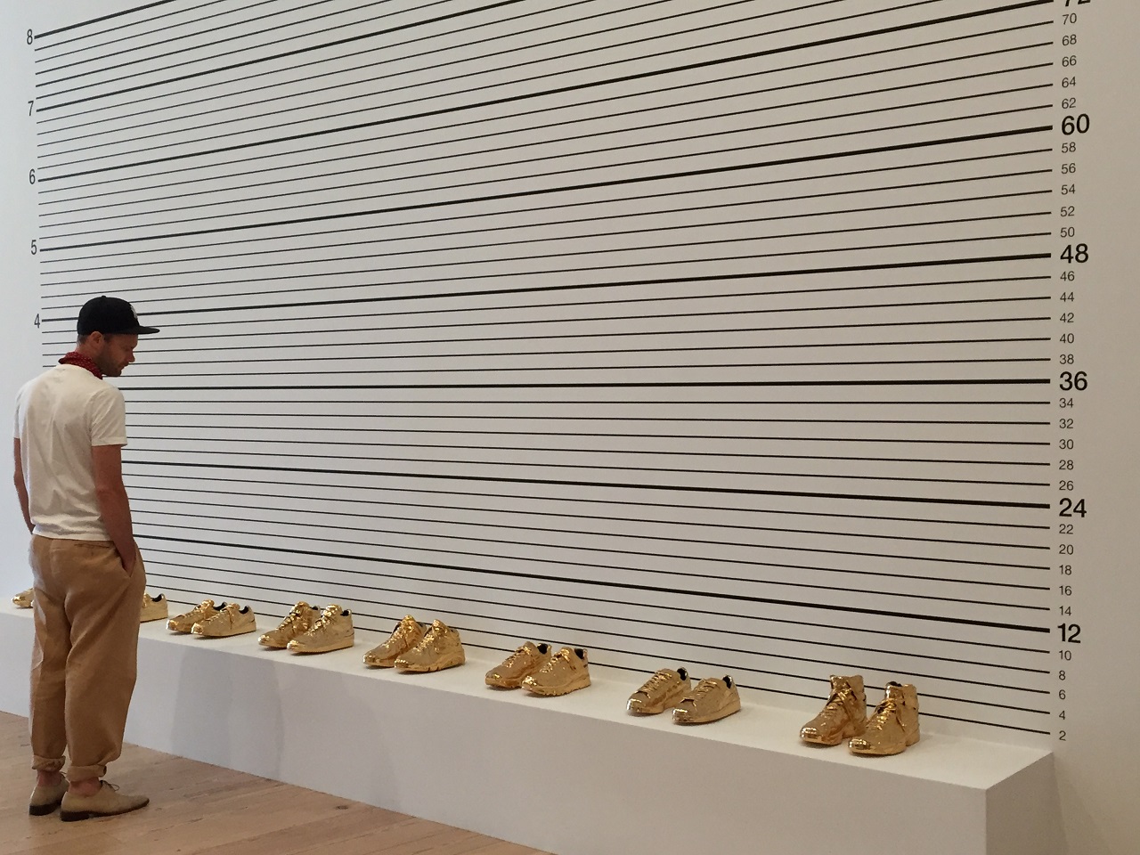 I won’t lie, there were a few pieces of art that evoked a strong feeling of “seriously?” but this time I kept it to myself (ok, for the most part). However, mom and my friend, both ladies in their 70’s, somehow forgot their inside voices and were quite loud about their opinions in the gallery but they can get away with it. It made me laugh when both questioned the camping equipment and the gold sneakers as I was thinking the same (if you are an art aficionado, please explain the following to me in the comments below).